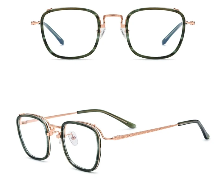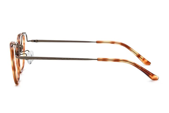 A armação para óculos de grau da EyewearClub traduz o estilo retrô clássico em uma edição exclusiva. Produzida em titânio com aros em acetato premium e acabamento artesanal, esta peça combina elegância vintage com um toque de modernidade. Os aros arredondados e as lentes blueblock protegem contra a luz azul emitida por dispositivos eletrônicos, adicionando conforto visual à singularidade de seu visual.